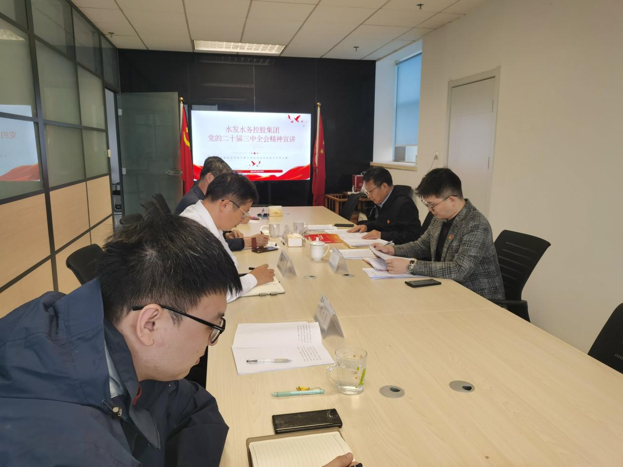 為深入貫徹落實(shí)黨的二十屆三中全會精神,深刻認(rèn)識黨的二十屆三中全會重大意義,水發(fā)水控集團(tuán)各區(qū)域公司以會前自學(xué)、分組學(xué)習(xí)研討、集中宣講等形式掀起學(xué)習(xí)熱潮。