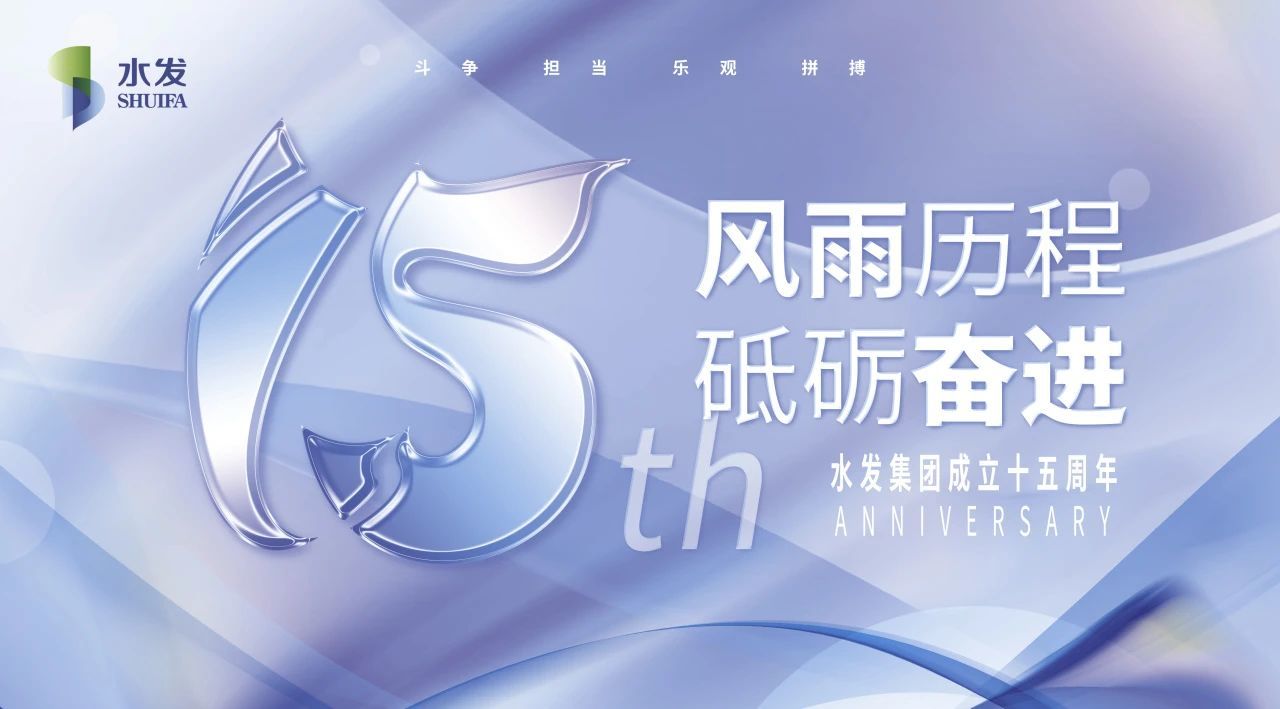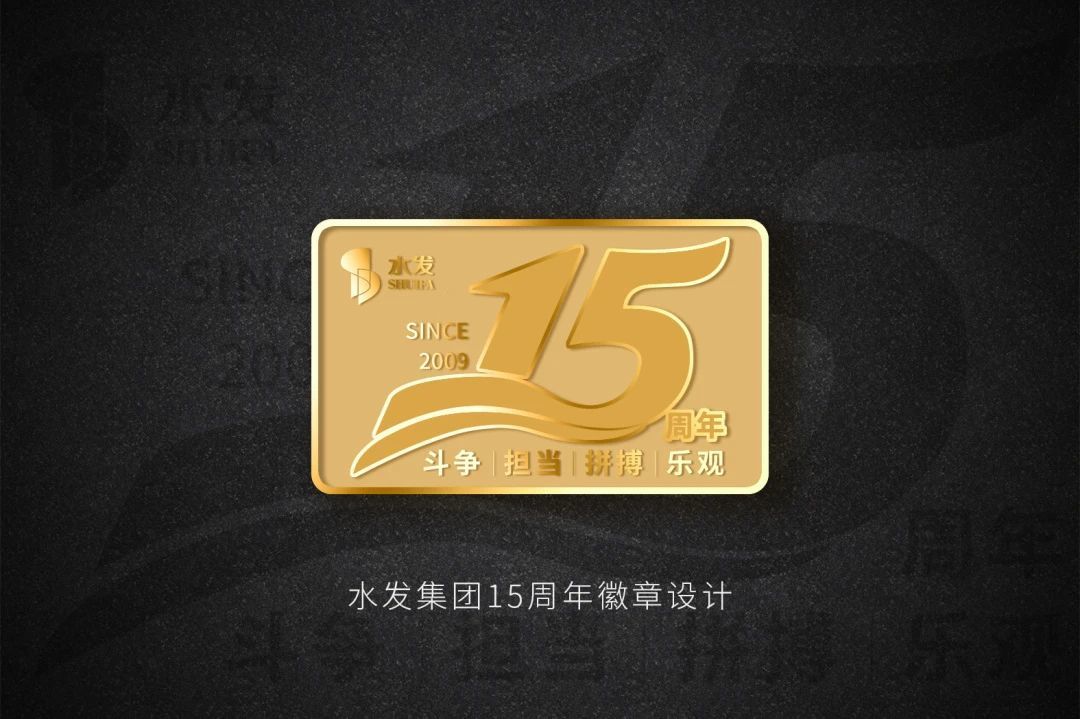 水發(fā)集團因水而興,從2009至2024年已走過15個春秋,數字“15”結合流動的水來設計,并結合了“斗爭、擔當、拼搏、樂觀”的新水發(fā)精神,金色的徽章更顯品質。
