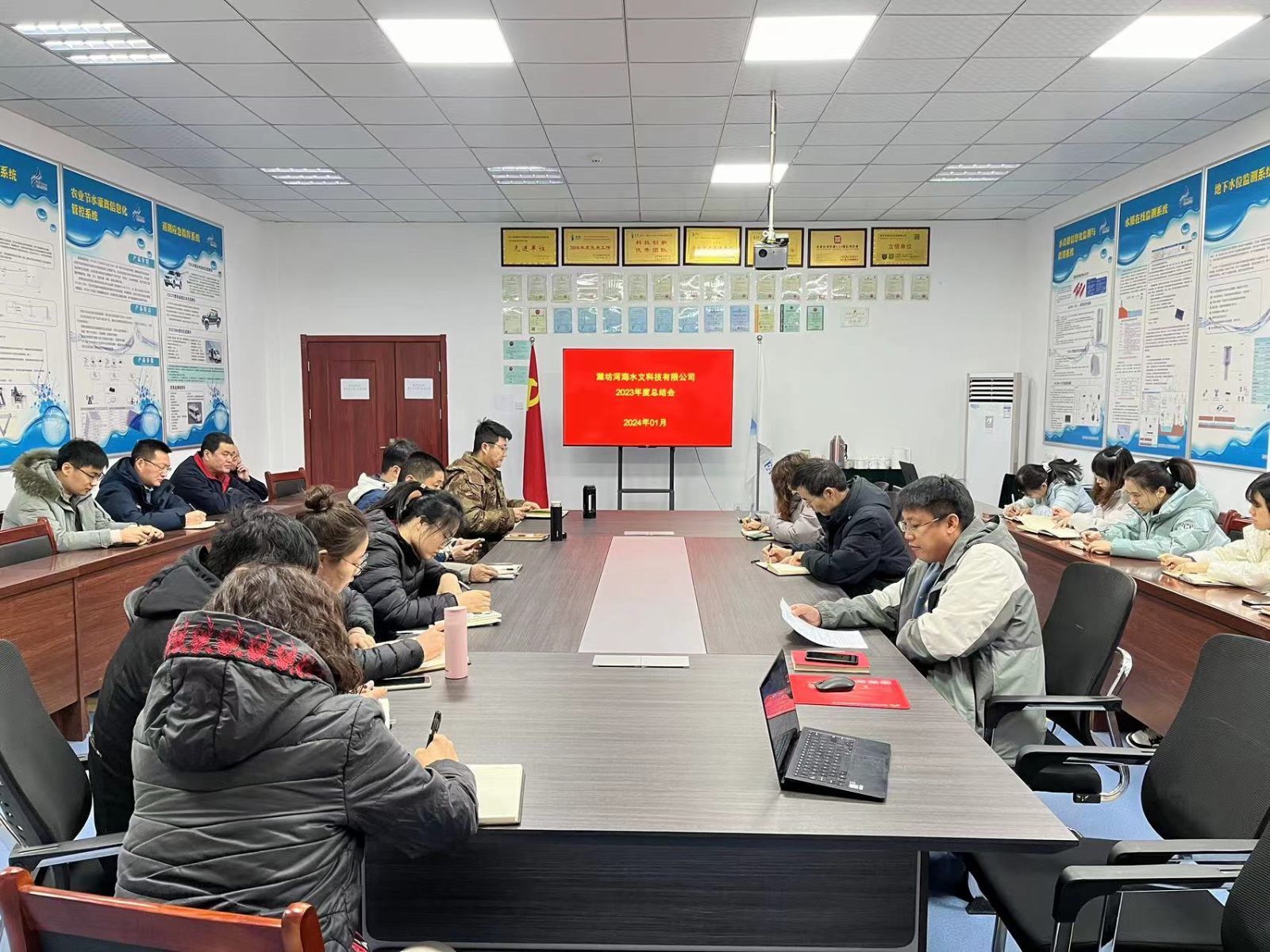 1月2日,濰坊河海水文科技有限公司組織全體員工召開2023年度總結會,對2023年工作進行回顧、反思,對2024年工作進行規(guī)劃。董事長龐明濤及全體員工參加會議。