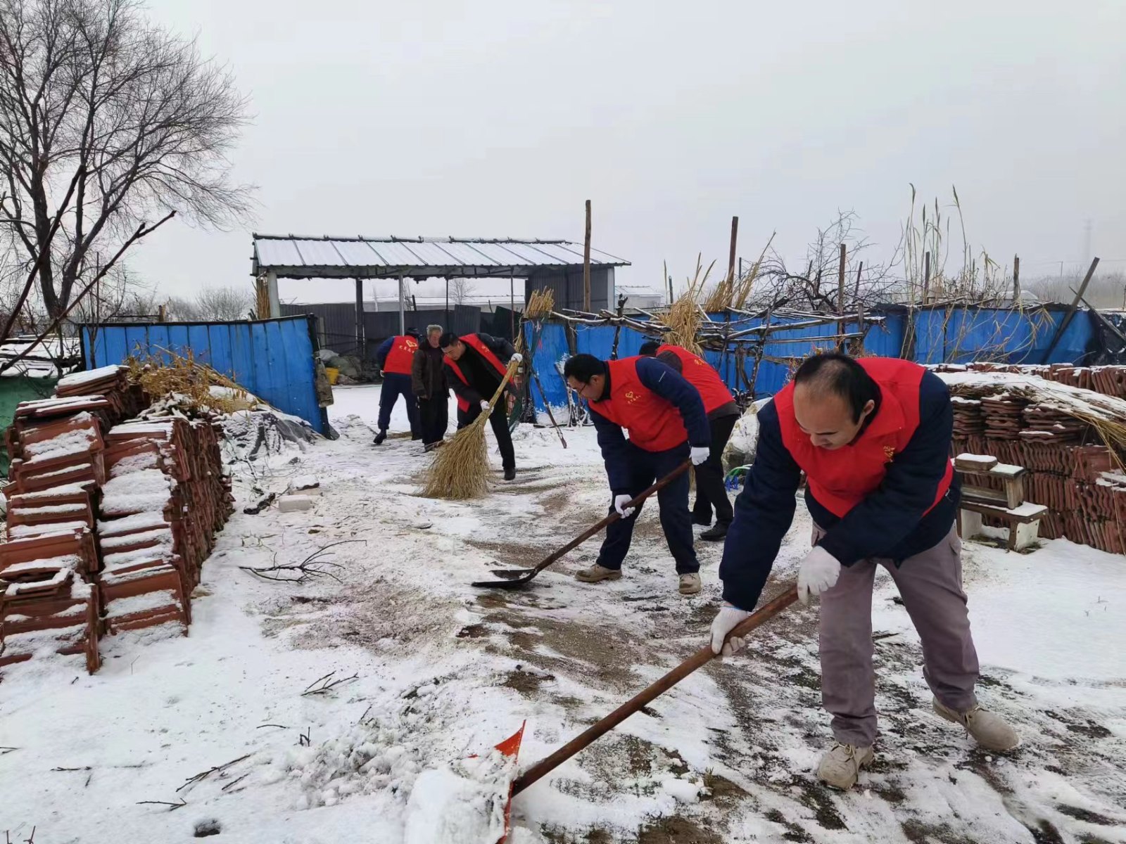 一大早,支部書記胡景青同志帶領(lǐng)黨員干部,拿著掃帚鐵鍬等工具趕往居民區(qū),為沒有勞動能力的孤寡老人清掃門前積雪。掃雪現(xiàn)場,大家發(fā)揚團結(jié)協(xié)作,不畏嚴寒的精神,在刺骨的風雪里,吹響了一鼓掃雪除冰,錘煉黨性集結(jié)號。黨員干部手握掃帚、鐵鍬,你鏟我掃,相互配合,熱鬧忙碌的氛圍驅(qū)散了雪天的寒冷。經(jīng)過兩個多小時的勞動,房前屋后的積雪被掃得干干凈凈。為孤寡老人門前鏟出了一條暖心安全道路,贏得了社區(qū)居民的一致好評。